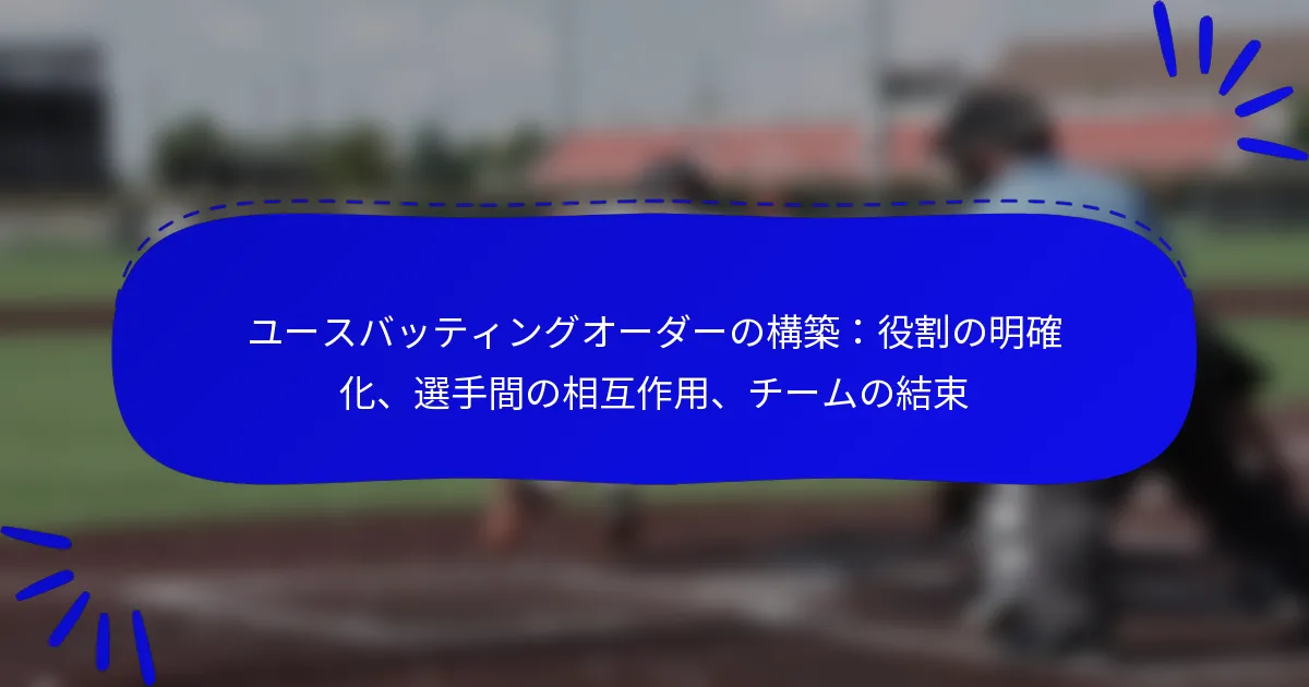 効果的な若者の打順を構築することは、個々の選手の強みを特定の役割に合わせることでチームのパフォーマンスを最大化するために不可欠です。チームメイト間の明確なコミュニケーションと協力を促進することで、コーチはゲームプレイとチームの結束を高め、最終的にはより統一された成功したチームダイナミクスにつながります。 若者の打順における主要な役割は何ですか? 若者の打順における主要な役割は、個々の選手の強みを活用してチームのパフォーマンスを最大化するように設計されています。これらの役割を理解することで、コーチや選手は全体的なゲームプレイを向上させるための一貫した戦略を作成できます。 リードオフヒッターの特徴と責任 リードオフヒッターはゲームのトーンを設定するために重要です。この選手は通常、スピードと出塁能力の組み合わせを持ち、頻繁に塁に出て得点機会を作ることができます。優れたリードオフヒッターは、ピッチを見極める目が鋭く、四球を選んだり、一貫してコンタクトを取ることができます。 スピードに加えて、リードオフヒッターは状況認識を示し、塁上でリスクを取るべきタイミングを知っている必要があります。ゲームを読む能力は、盗塁や次の打者のためのポジショニングを進めることにつながります。コーチは、プレッシャーに対処し、高リスクの状況でも冷静さを保てる選手を探すことが多いです。 パワーヒッターの特性とポジショニング パワーヒッターは通常、打順の中間、特に3番または4番に配置されます。これらの選手は、遠くに打つ能力によって特徴付けられ、得点を生むための重要な資産となります。パワーヒッターは通常、強い体格と優れたバットスピードを持ち、効果的にピッチにコンタクトを取ることができます。 コーチは、パワーヒッターが塁上にランナーがいる状況で打つ機会を与え、ゲームへの影響を最大化することを確保する必要があります。これらの選手は、すべてのピッチにスイングするのではなく、自分が打てるピッチを待つことで、プレートで忍耐強くいることが重要です。この戦略的アプローチは、ゲームの結果に大きな影響を与える可能性があります。 コンタクトヒッターのスキルと配置 コンタクトヒッターは通常、ランナーを進めることができるポジション、特に打順の2番または6番に配置されます。これらの選手は、ボールに一貫してコンタクトを取ることに優れ、パワーで打つことよりも出塁を優先します。彼らのスキルには、優れた手と目の協調性と、フィールドでボールを戦略的に配置する能力が含まれます。 コーチは、コンタクトヒッターのランナーを得点圏に進める能力を重視します。彼らは、必要に応じてバントを実行したり、ランナーの後ろで打ったりするなど、状況に応じた打撃に焦点を当てるべきです。この適応力は、すべての得点が重要な接戦で特に重要です。 打順におけるスピードと走塁の役割 スピードは打順において重要な役割を果たし、特にラインアップの上部と下部に配置された選手にとって重要です。速い選手は守備を混乱させ、得点機会を生み出し、投手にプレッシャーをかけることができます。彼らの盗塁能力は、イニングのダイナミクスを変えることができ、次の打者が彼らをホームに帰すのを容易にします。 コーチは、投手を読むことやリスクを取るべきタイミングを知るなど、走塁の基本を教えることを優先すべきです。効果的な走塁は追加得点につながり、ゲームの勢いを変えることができます。選手は自分のスピードを理解し、打順内で効果的に活用する方法を知る必要があります。 選手の役割における状況認識の重要性 状況認識は打順内のすべての選手にとって重要であり、ゲーム中の意思決定に影響を与えます。選手は、スコア、アウト数、ランナーのポジショニングなど、ゲームの文脈を理解する必要があります。この認識は、パワーで打つべきか、ランナーを進めることに焦点を当てるべきかなど、情報に基づいた選択を行うのに役立ちます。 コーチは、コミュニケーションとチームワークの重要性を強調すべきであり、選手はプレイを効果的に実行するために協力する必要があります。定期的な練習シナリオは、選手が状況認識を発展させるのに役立ち、さまざまなゲーム状況に備えることができます。この焦点は、チームの結束とフィールドでの全体的なパフォーマンスを大幅に向上させることができます。 選手間の相互作用は打順の効果にどのように影響しますか? 選手間の相互作用は、コミュニケーション、信頼、協力を促進することによって打順の効果に大きな影響を与えます。選手が互いの強みと弱みを理解すると、全体的なパフォーマンスを向上させるより戦略的で一貫したラインアップを作成できます。 選手間の信頼とコミュニケーションの構築 信頼とコミュニケーションは、成功する打順の基盤となる要素です。選手が戦略に