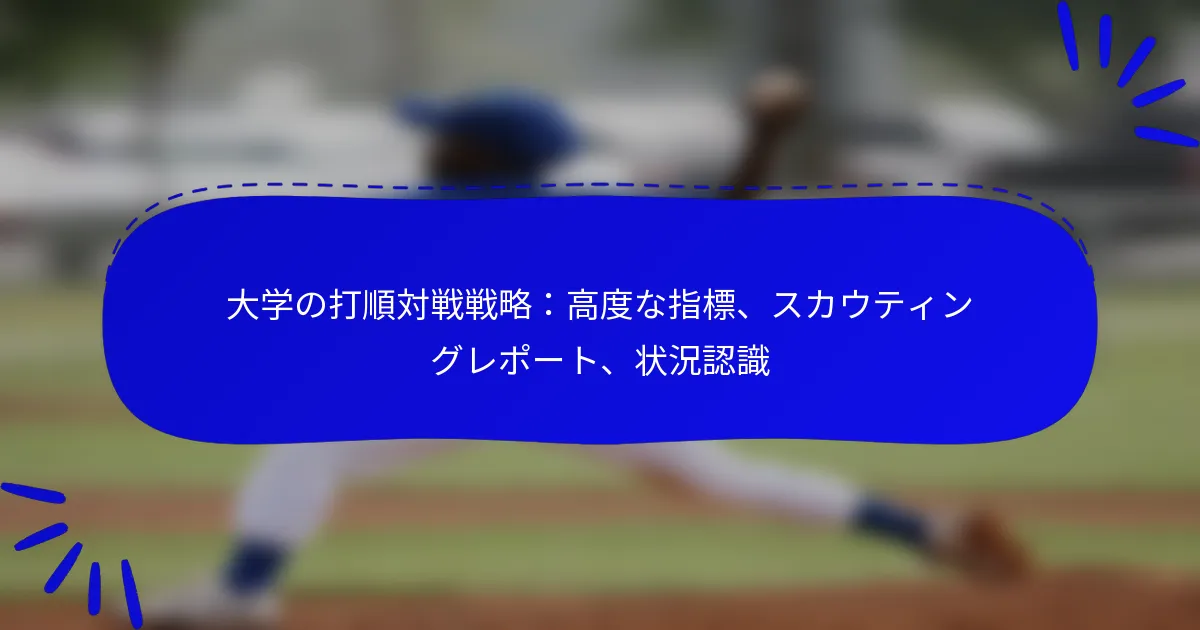 大学野球において、効果的な打順を構築することは、得点の可能性とチーム全体のパフォーマンスを最大化するために重要です。出塁率やスラッギング率などの高度な指標を活用することで、コーチは戦略的にラインアップを最適化できます。また、スカウティングレポートは選手のマッチアップに関する貴重な洞察を提供し、状況認識により試合のダイナミクスに基づいてリアルタイムで調整を行うことができます。これらの要素は、攻撃の効果を高めるための包括的なアプローチを形成します。