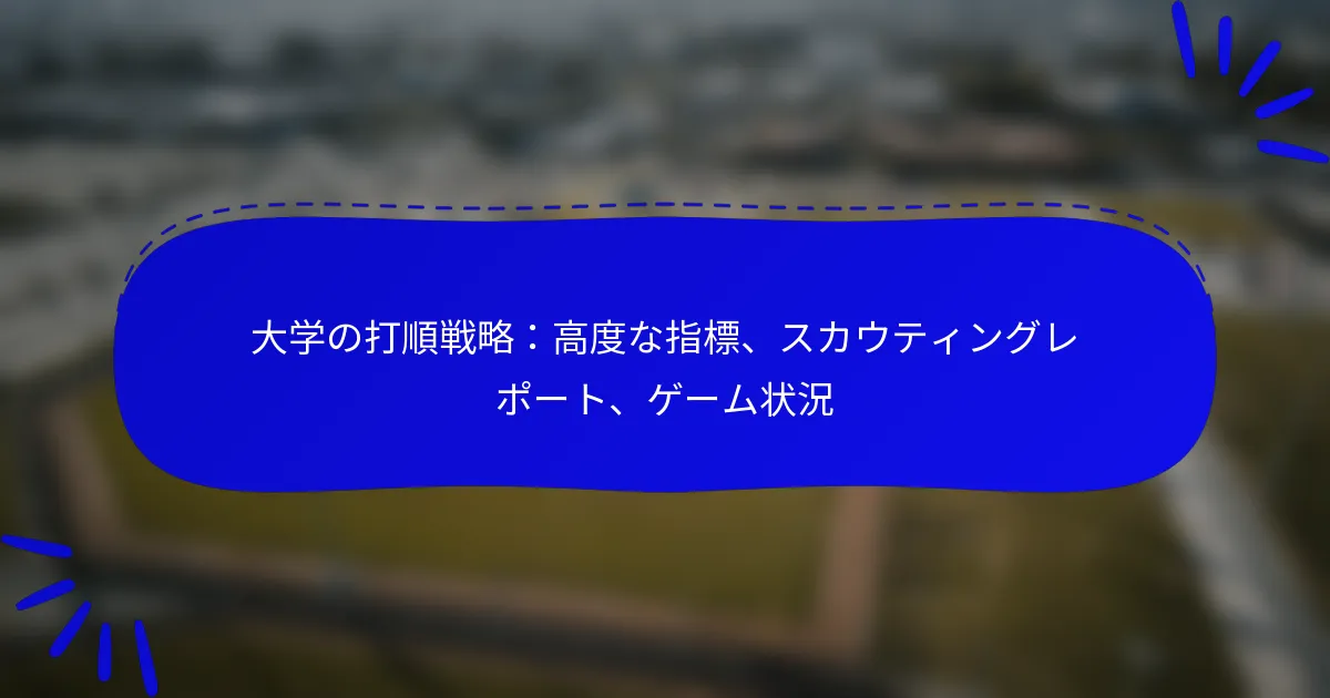 大学の打順戦略を向上させるには、高度な指標、スカウティングレポート、ゲーム状況を統合して選手のパフォーマンスを最適化することが必要です。選手の強みを考慮し、ラインアップの柔軟性を維持することで、チームはさまざまな課題に適応し、得点機会を最大化できます。