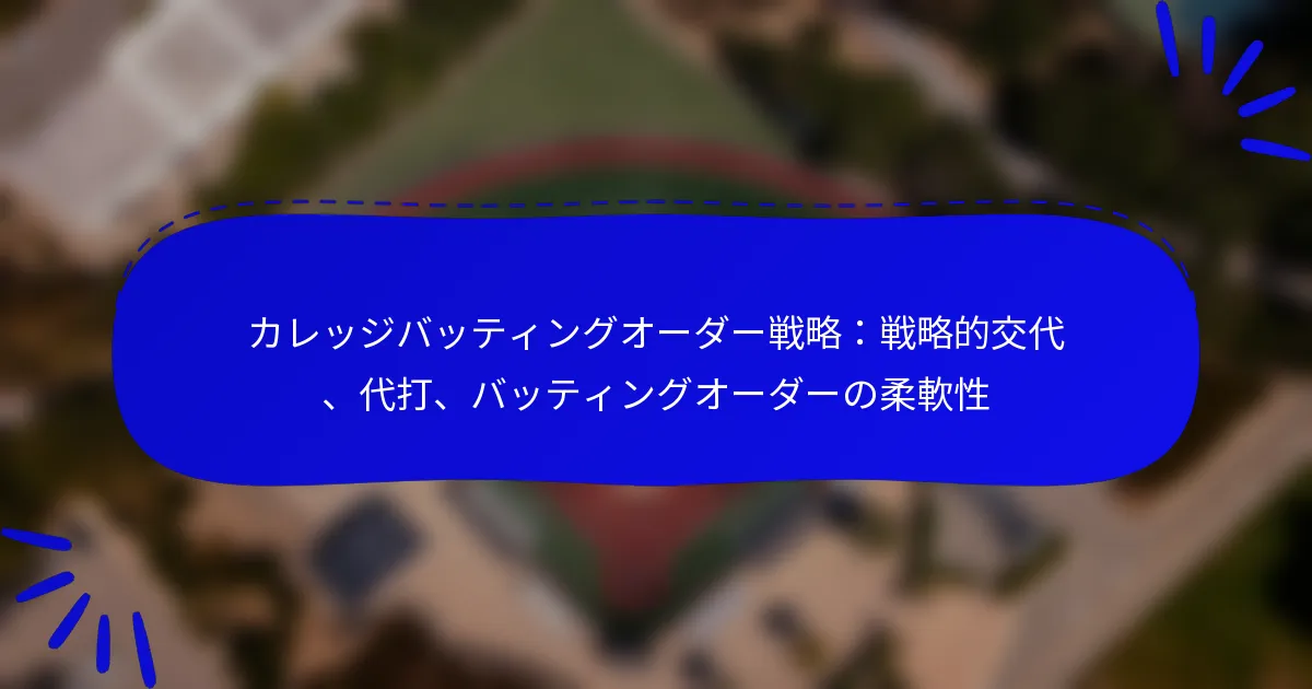 大学の打順戦略は、得点力を最大化し、個々の強みを活用するために選手を順番に配置することを含みます。これらの要素を理解することは、コーチがチームのパフォーマンスを向上させ、ゲーム状況に適応するために不可欠です。